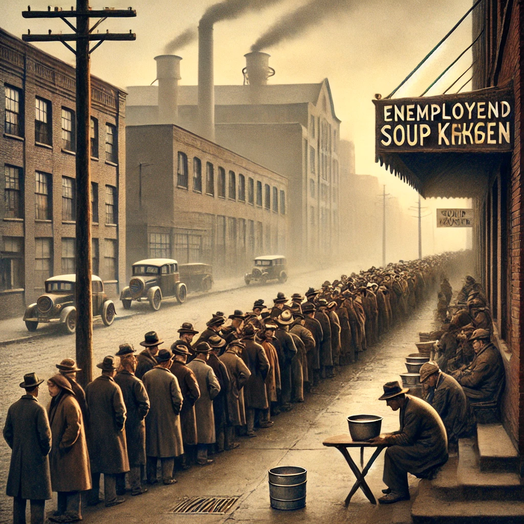 1929년 10월 24일, 뉴욕 증권거래소에서 주가가 폭락하면서 세계 대공황(Great Depression)이 시작되었다. 이는 단순한 경제 위기가 아니라, 전 세계적으로 수많은 기업이 도산하고 실업률이 급증하며 국제 무역이 붕괴하는 등 현대 자본주의 역사상 가장 심각한 경제 붕괴로 기록되었다. 미국에서 시작된 이 위기는 유럽과 아시아까지 확산되었으며, 이후 제2차 세계대전 발발의 주요 원인 중 하나로 작용했다.