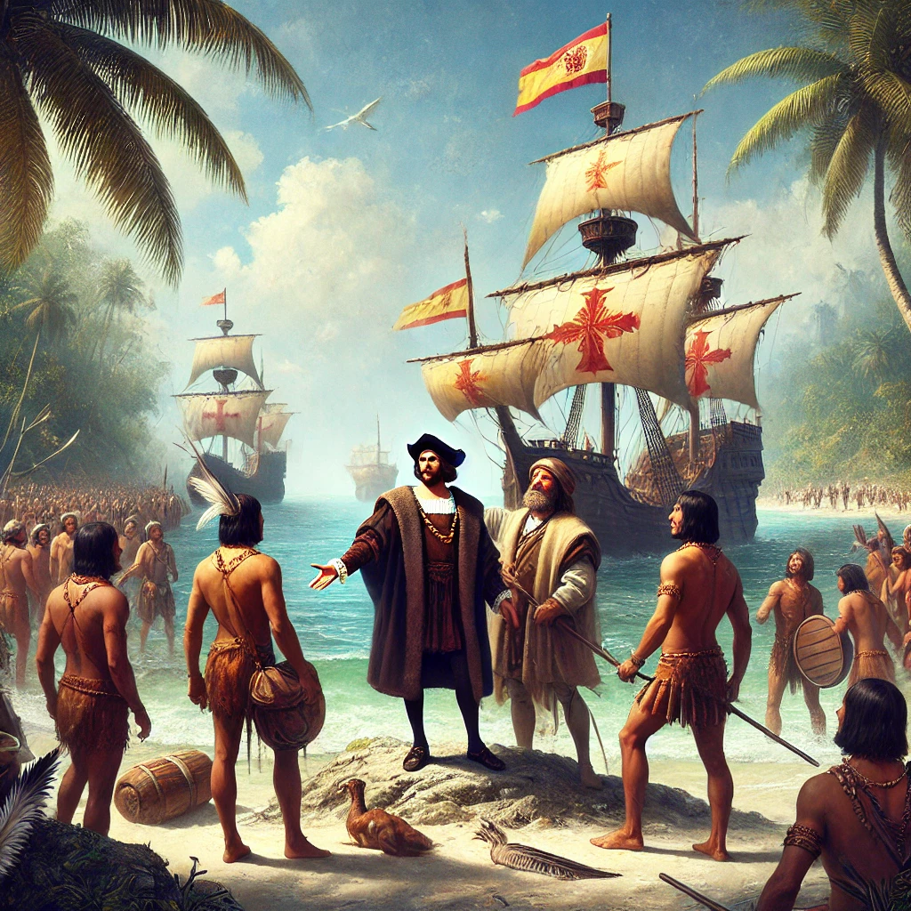 1492년 10월 12일, 크리스토퍼 콜럼버스(Christopher Columbus)는 대서양을 건너 현재의 바하마 제도에 도착했다. 그는 스페인의 후원을 받아 인도(아시아)로 가는 새로운 항로를 개척하려 했지만, 예상치 못한 땅을 발견했다. 이 사건은 대항해 시대(Age of Exploration)를 본격적으로 열었고, 이후 유럽과 아메리카 대륙의 역사적 연결을 가져오게 되었다.