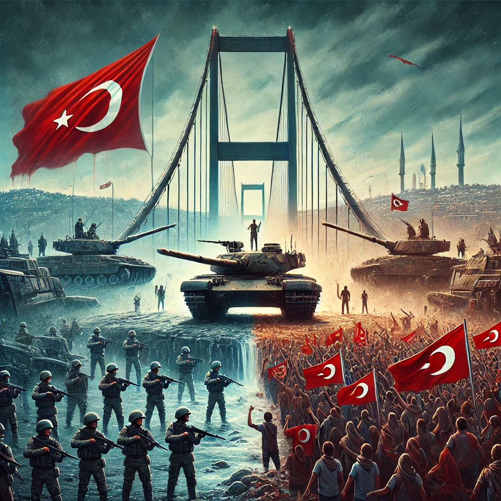 7월 15일 밤, 터키 군부의 일부 장성들이 쿠데타를 개시하며, 이스탄불과 수도 앙카라의 주요 시설을 장악하려 했습니다. 전투기와 탱크가 배치되었고, 국영 방송국이 점령당하며 쿠데타 세력은 비상 계엄령을 선포했습니다. 또한, 군부는 에르도안 대통령을 체포하려 했으나, 그는 휴가지에서 신속하게 피신하며 상황을 통제했습니다.